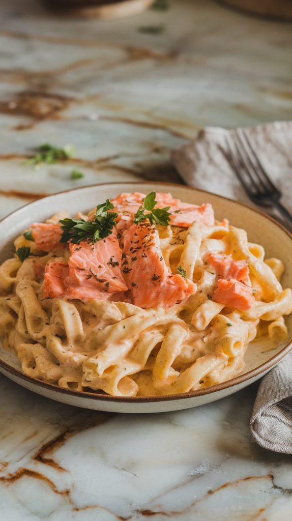 This bowl of pasta feels like comfort food got a glow-up. The creamy lemon garlic sauce hugs every noodle without feeling heavy, and the salmon adds that savory richness that makes you feel like you spent way more time cooking than you actually did.