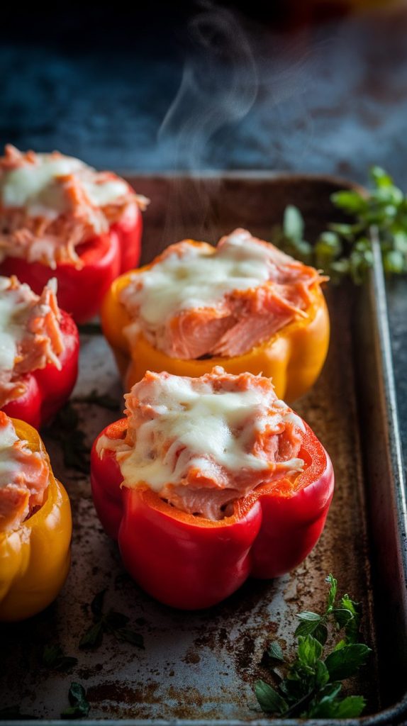 These stuffed peppers taste like comfort meets freshness. The salmon filling is creamy, cheesy, and perfectly seasoned, while the peppers add natural sweetness.
