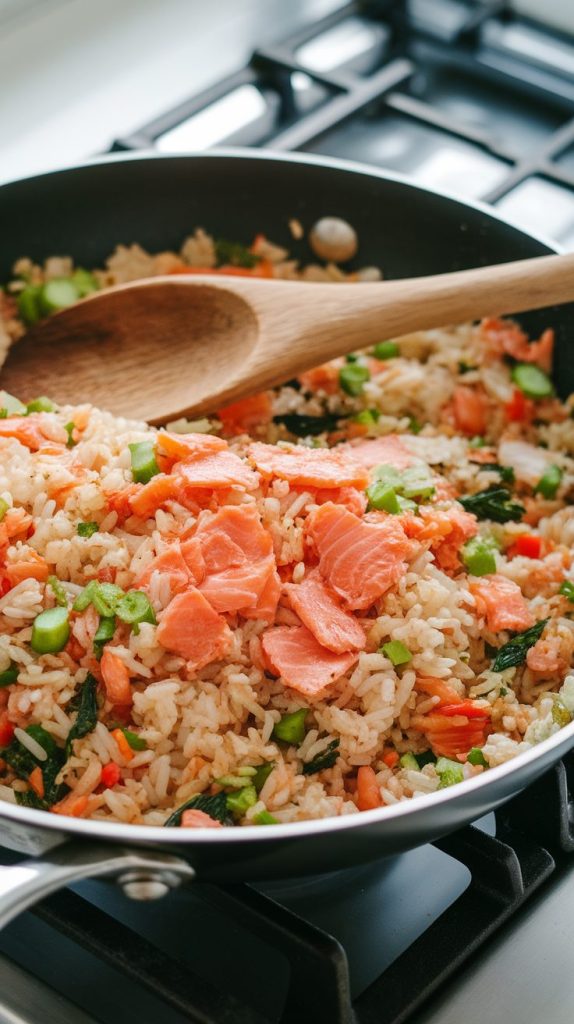 If I ever had a signature lazy-night dinner, this would be it. Salmon fried rice comes together in the time it takes to scroll through your notifications.