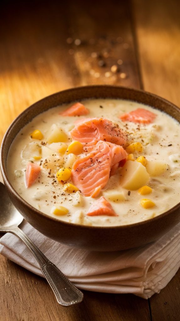 This chowder is cozy, hearty, and perfect for nights when you want something warm and filling. The broth becomes creamy without being too thick, and the salmon blends beautifully with the potatoes.