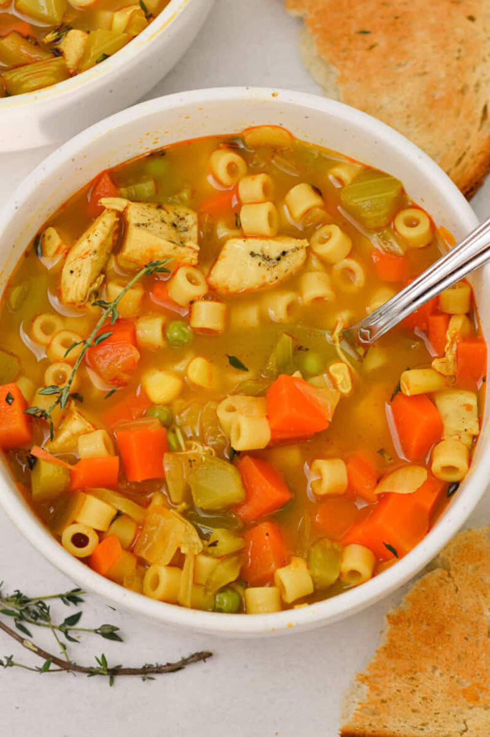 Talk about eating your greens—and then some. This version is a rainbow fiesta, packed with carrots, celery, frozen mixed veggies, and hearty ditalini pasta. It’s nutritious, colorful, and totally satisfying.