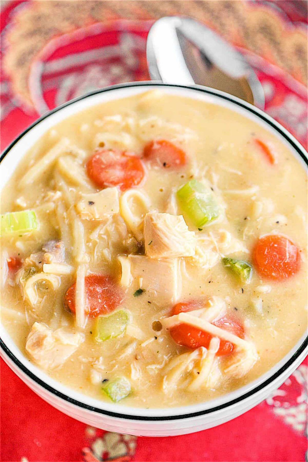 It’s got all the cozy vibes—tender chicken, crisp carrots and celery, and gooey cheddar swirling through the broth. The cheese makes it rich and indulgent, but it’s still easy enough for weeknights.