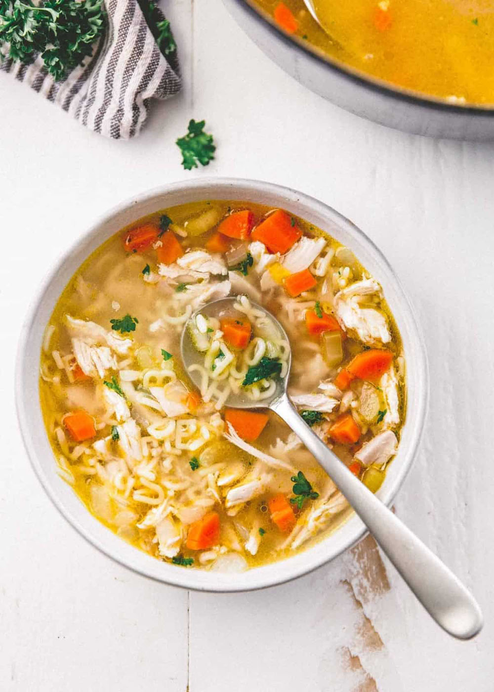 This version uses bone-in chicken for extra richness, plus carrots, celery, and a hit of seasoning that gets better the longer it simmers. The noodles go in near the end so they stay perfectly tender (not mushy!), and the broth? Oh, it’s packed with flavor.