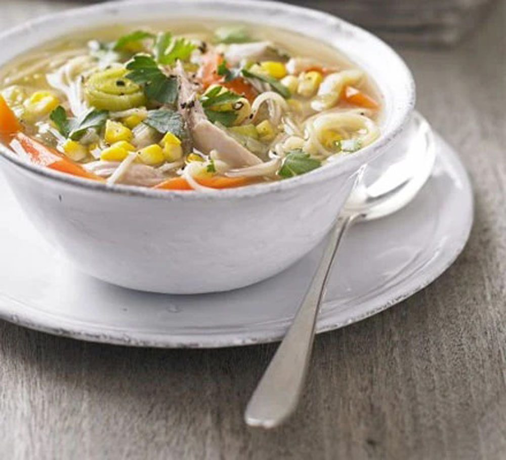 20. Sweet & Savory: Chicken Noodle Soup with Sweet Corn