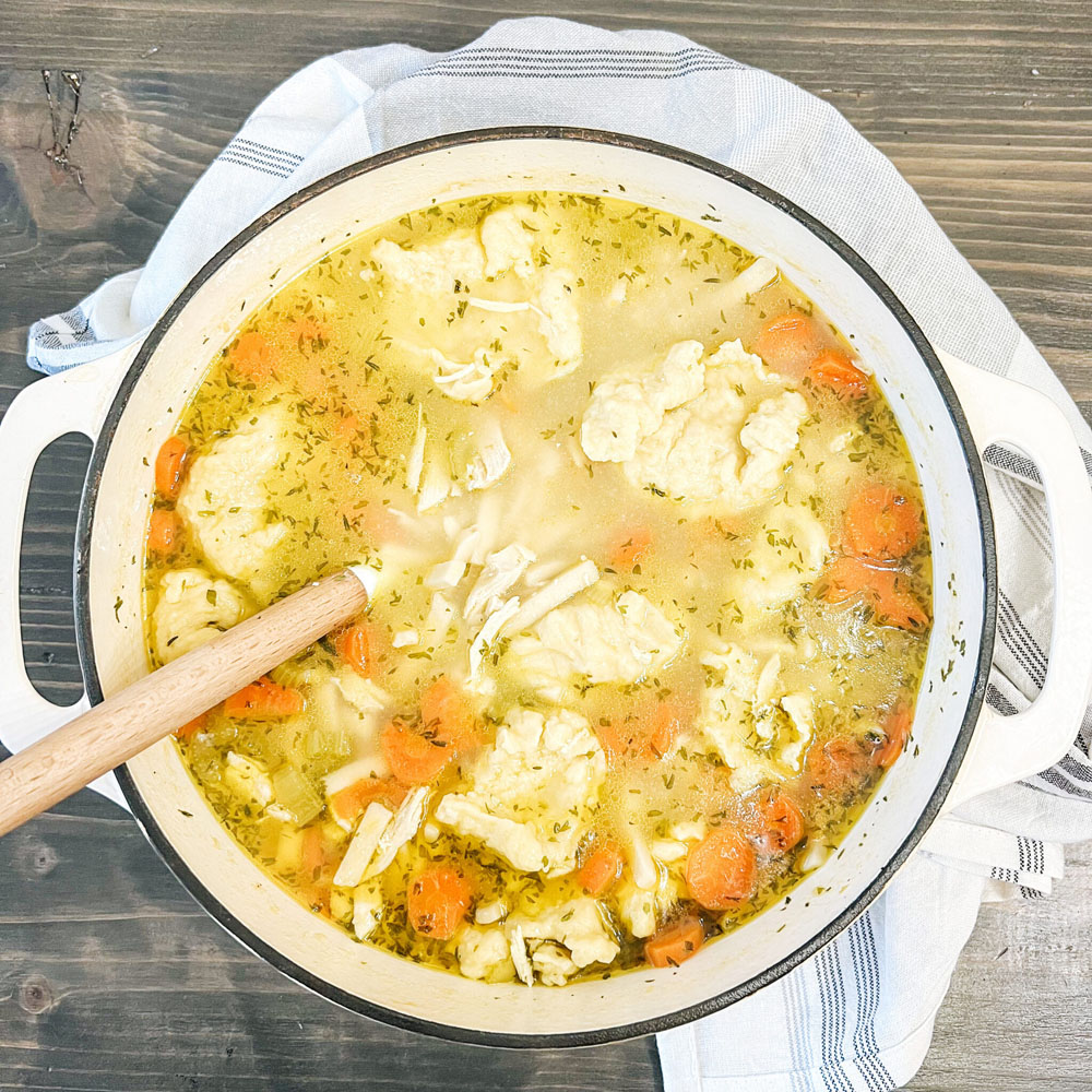 It starts with a rich, seasoned broth studded with carrots, celery, onions, and shredded chicken—just like the classics. Then you drop in homemade dumplings (mix flour, egg, milk, pinch of cream) that steam until pillowy and tender. Each bite gives you soup and dumpling together—that’s smart eating.
