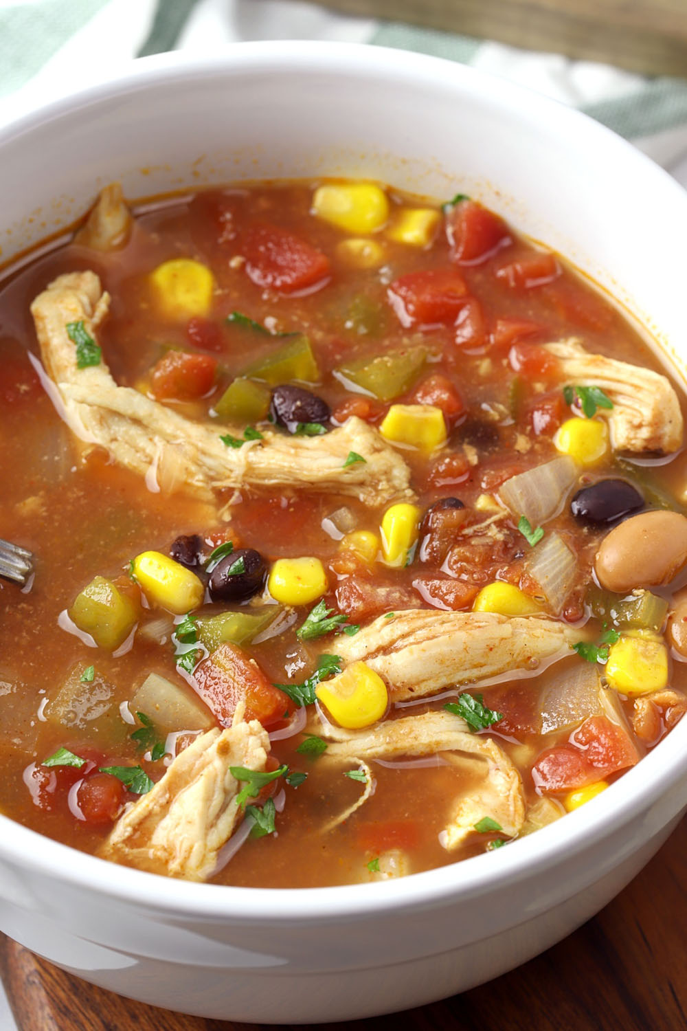 14. Crockpot Tex‑Mex Chicken Taco Soup