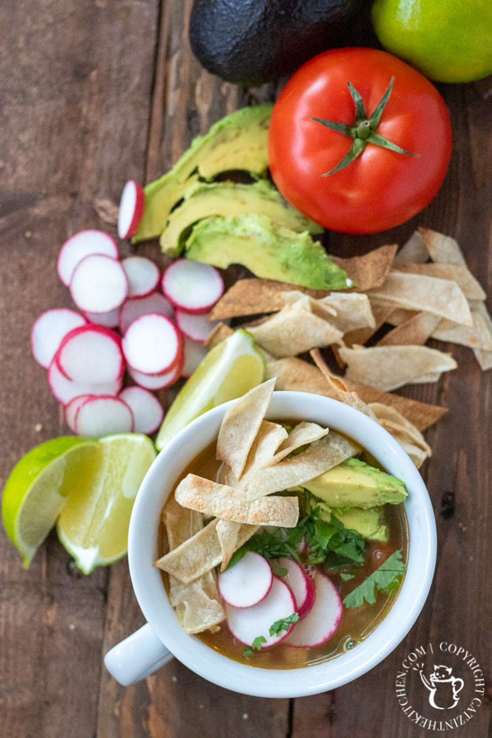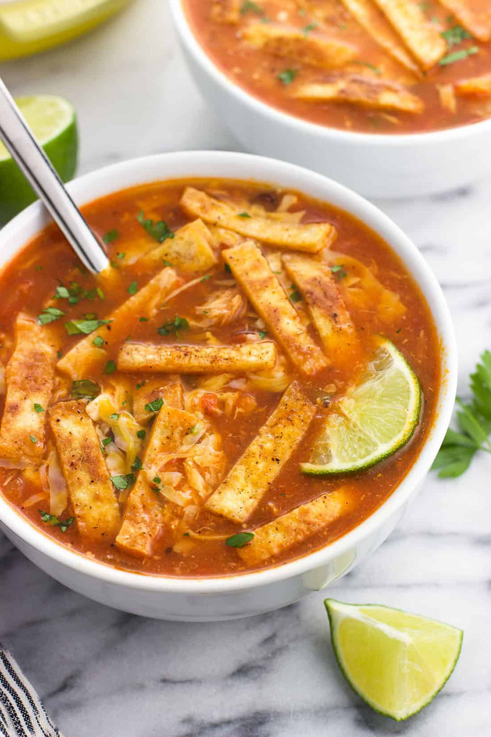 Serving idea: Top with tortilla strips, lime wedges, and even a sprinkle of cotija or jack cheese for richness.
