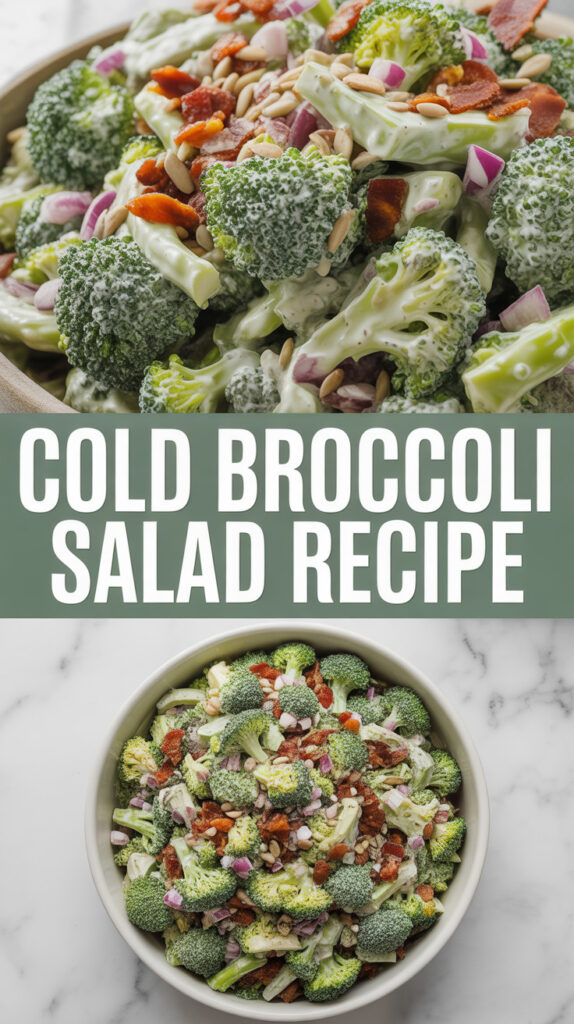 Cold broccoli salad succeeds because it focuses on contrast rather than complexity. You get crunch from raw broccoli, creaminess from the dressing, sweetness from add-ins, and a little salty bite that keeps everything interesting. That balance makes every forkful feel intentional instead of random.