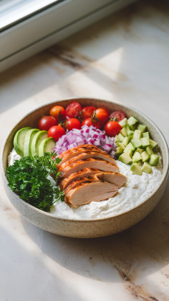 Cottage cheese acts as a creamy base that replaces dressing and keeps everything cohesive. I started making this when I got bored of basic chicken salads, and now it’s on repeat.