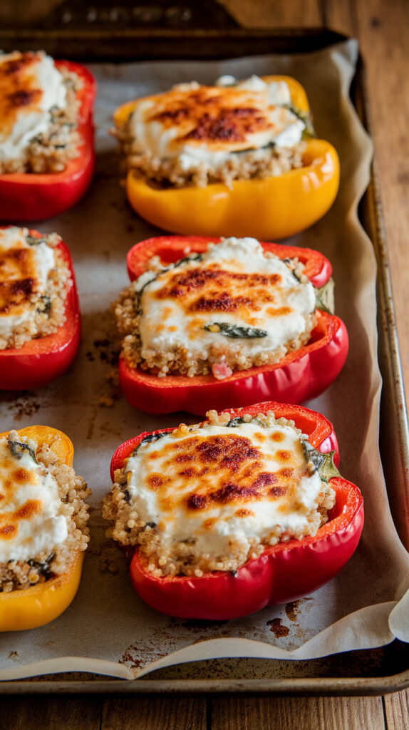 - Bake for 20–25 minutes until peppers soften and the tops lightly brown. Let them cool slightly before serving.