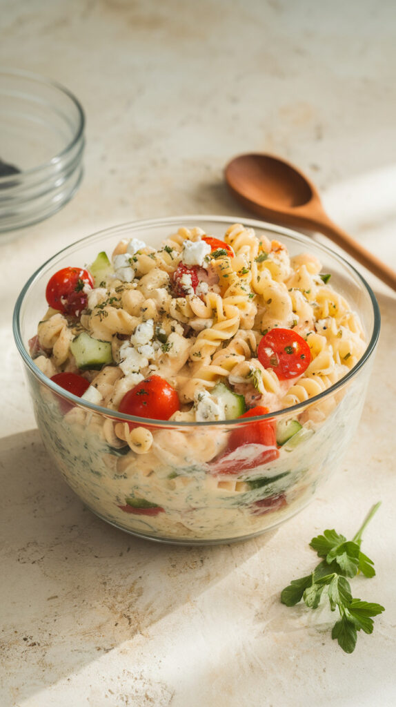 Pasta salad often hides under layers of oily dressing. Blending cottage cheese into the dressing creates a creamy base with less heaviness. It clings to the pasta beautifully. I started doing this for meal prep, and it holds up surprisingly well.