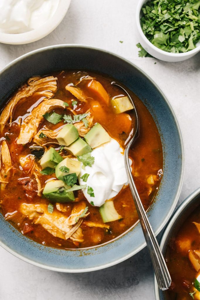 8. Creamy Chicken Taco Soup with Tortilla Strips