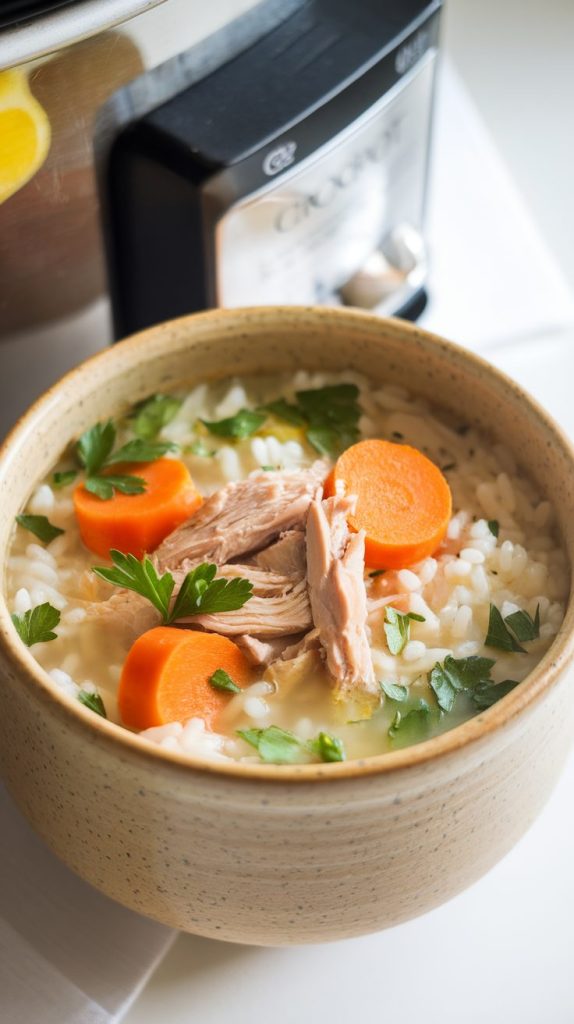 10. Crockpot Rotisserie Chicken Lemon Rice Soup