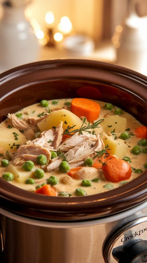 This cozy favorite feels like a warm blanket in a bowl. Using shredded rotisserie chicken makes prep nearly effortless, and the crockpot handles all the flavor-building magic.
