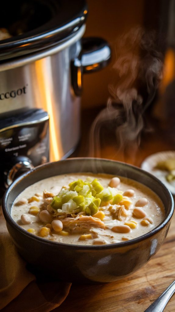 This chili is creamy, hearty, and full of mellow heat from green chiles and spices. Using rotisserie chicken makes it super easy, and the crockpot turns everything into a flavor-packed bowl of comfort.