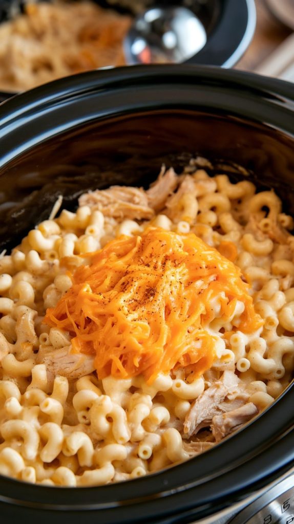 9. Slow Cooker Rotisserie Chicken Mac & Cheese
