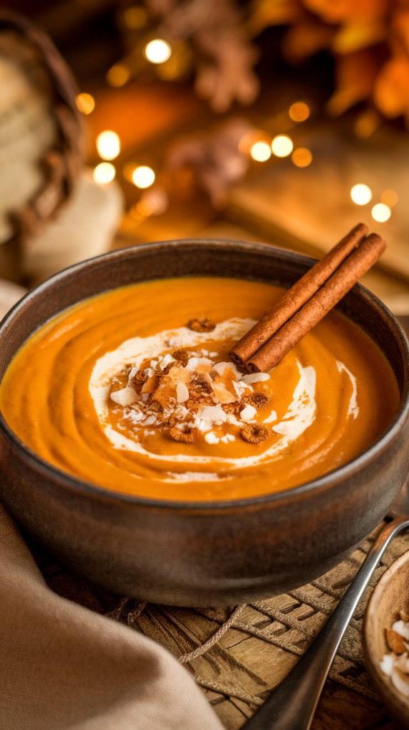 This one’s basically a cozy blanket in soup form. Sweet potatoes bring sweetness, coconut milk adds creaminess, and cinnamon ties it all together.