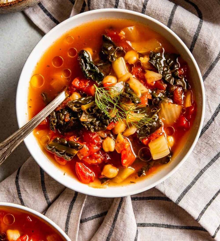 Think tomatoes dancing with fennel’s subtle anise notes, kale’s rustic chewiness, and chickpeas bringing that gentle, nutty creaminess. This dinner feels extra nourishing—from the fiber-loaded kale to the gentle warmth of oregano and the soothing broth.