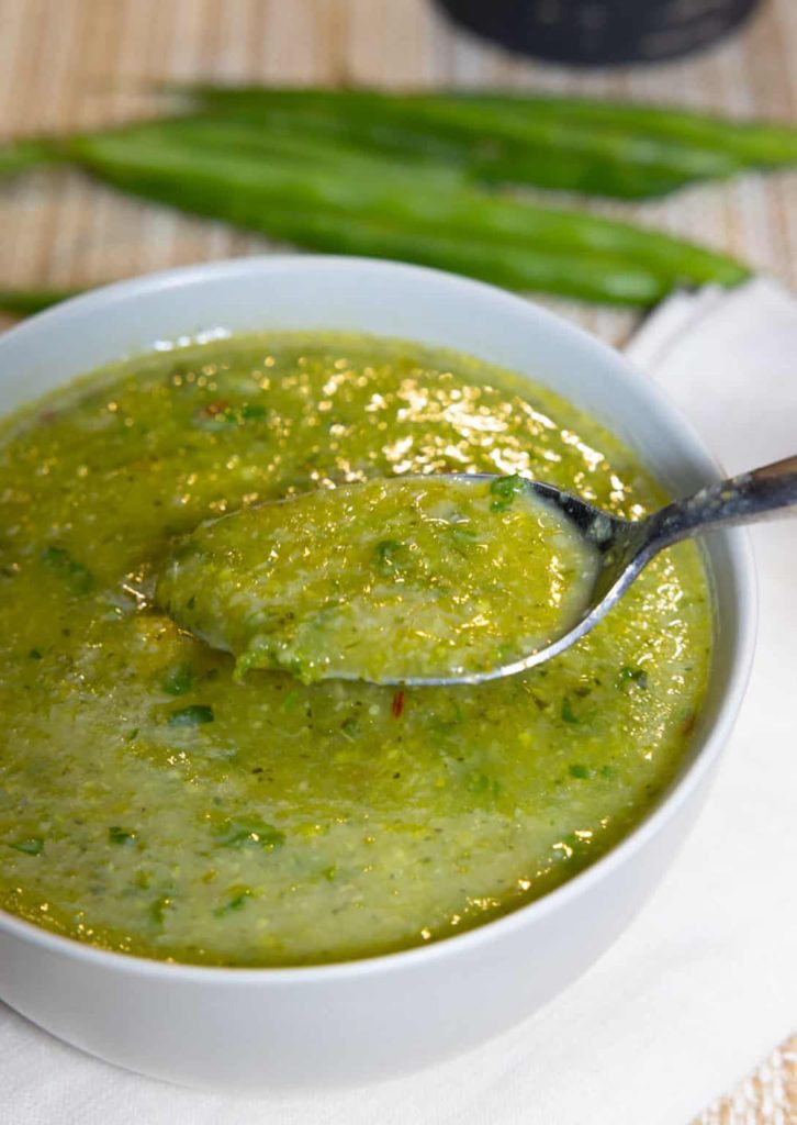 It’s a super green detox soup that takes humble broccoli stems, leafy greens, and aromatic celery to new levels of nourishing deliciousness.