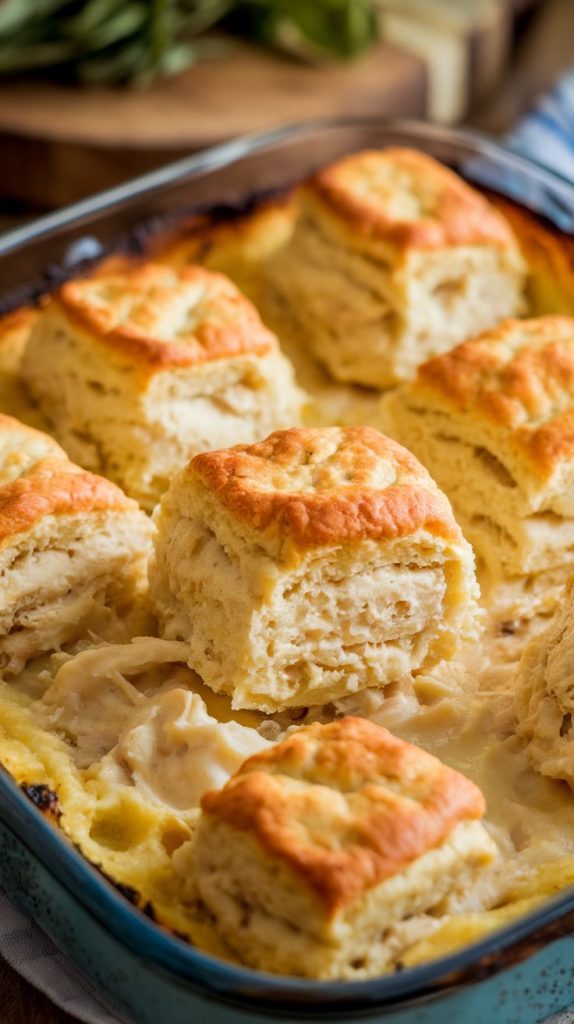 Fluffy biscuits + creamy chicken filling = absolute dinner bliss.
