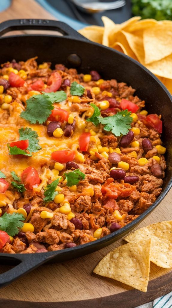 This one-pan taco dish is the foodie version of “work smarter, not harder.” It gives you all the taco flavors—spices, juicy chicken, melty cheese—without needing to assemble individual tacos. Kids love this, adults love this, and it reheats like a dream.