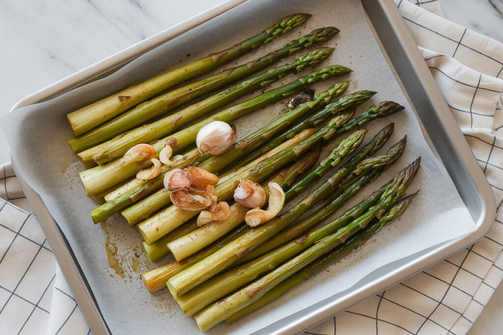 Remove the asparagus once the edges look lightly crisp and the stalks feel tender when pierced with a fork. Don’t wait until they turn olive green and floppy. A squeeze of lemon right at the end adds brightness without overpowering.