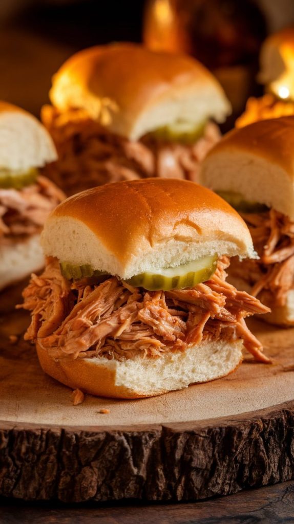 These sliders deliver the perfect mix of sweet, smoky, and tangy flavors. The BBQ sauce caramelizes slightly as it heats with the chicken, and when you pile it onto soft buns, the whole thing just works.