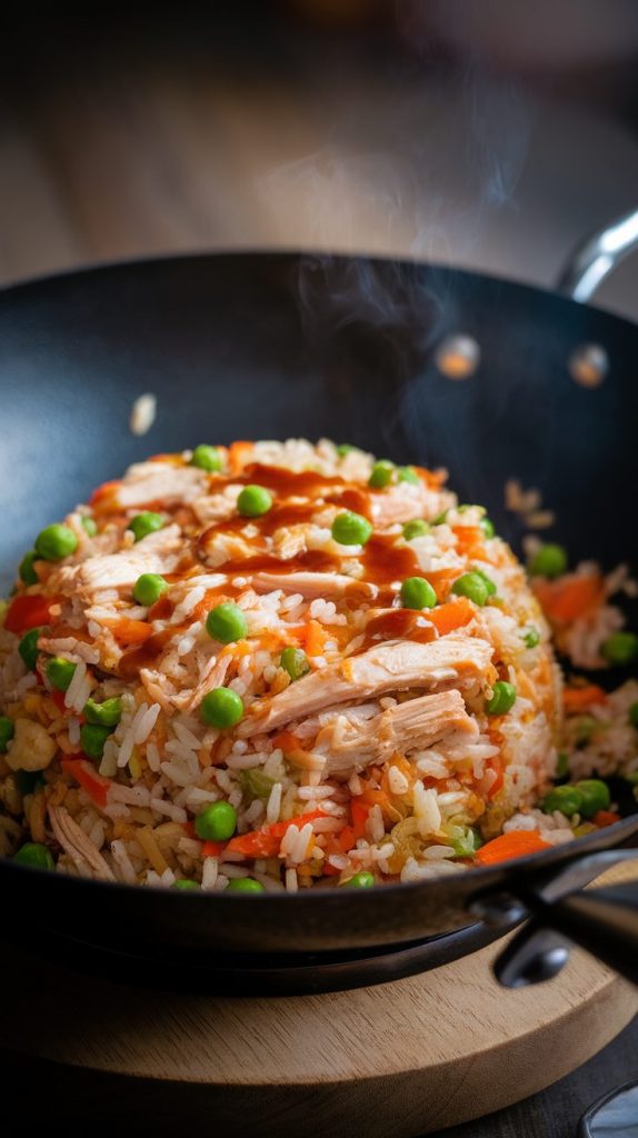 This shredded chicken fried rice is one of those magical dishes that tastes like you spent forever making it—even though it comes together embarrassingly fast. It’s savory, slightly smoky, and packed with satisfying bites of chicken in every spoonful.