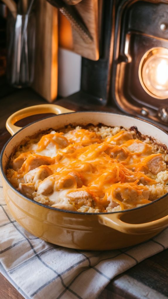The rice bakes into the sauce, the chicken adds protein, and everything becomes one bubbling, golden masterpiece. Perfect for feeding a crowd or getting multiple meals out of one pan.