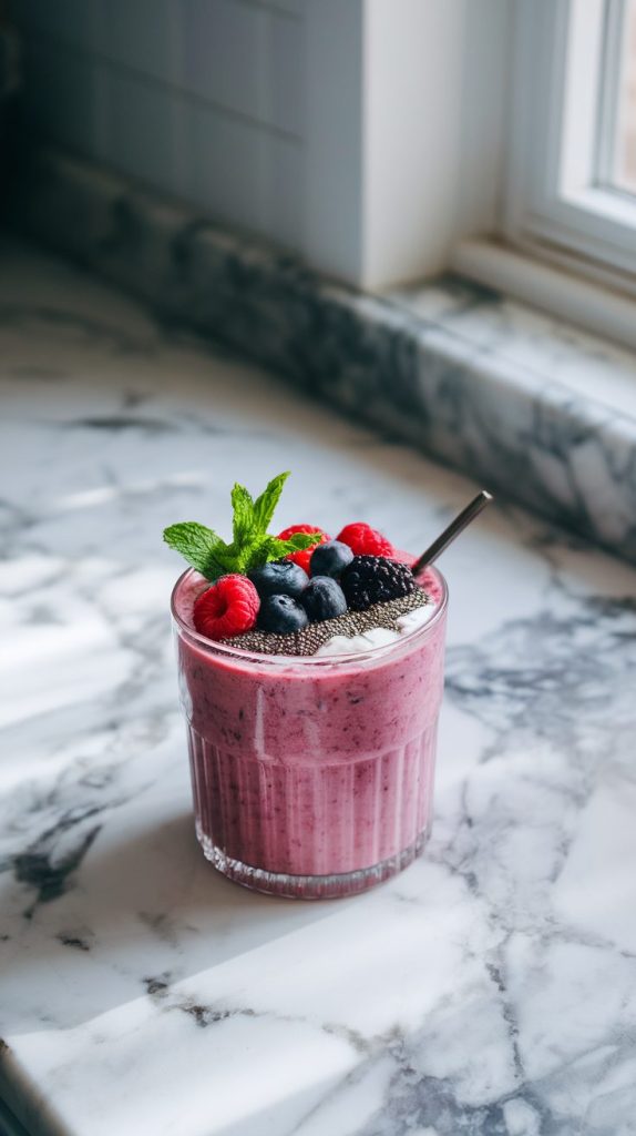 This smoothie hits like a cool breeze on a hot day. The combo of berries, mint, and Greek yogurt gives you freshness, creaminess, and that subtle sweetness you get from berries without feeling guilty.