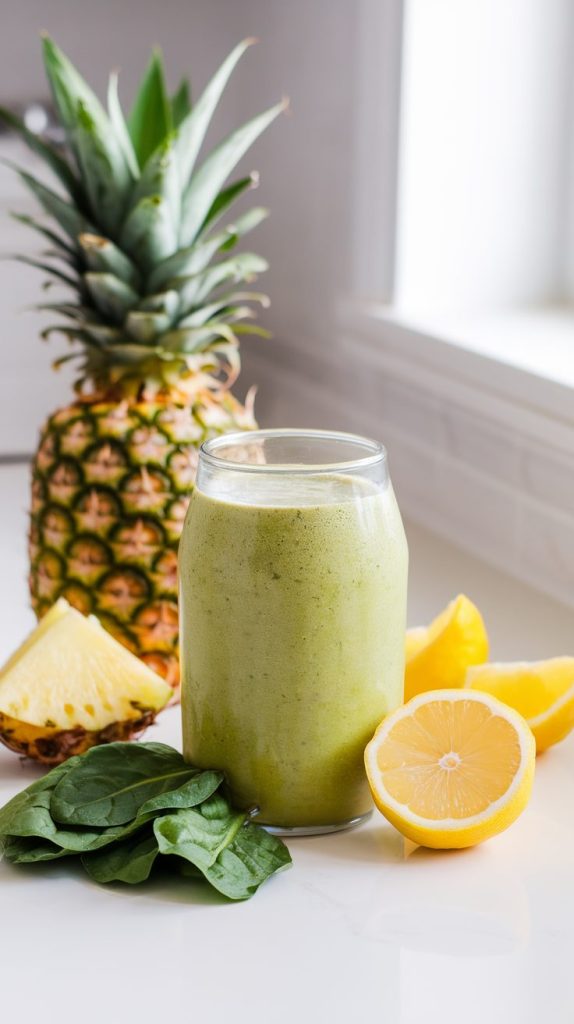 Spinach blends right in, while pineapple and lemon add a tropical kick that turns this into a feel-good, clean-bodied vibe in a glass.