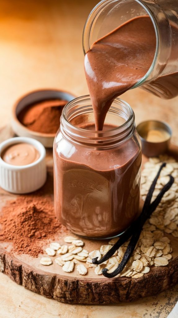 This one feels like dessert pretending to be healthy—but it actually is healthy. The combo of cocoa powder, almond butter, and banana gives you that creamy chocolate milkshake vibe.