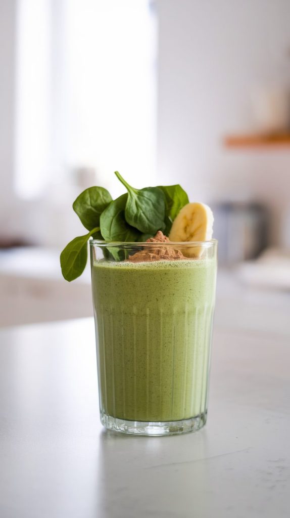 This smoothie is for the days you want energy and glowing skin. Matcha gives you a clean caffeine boost without the crash. Paired with spinach and protein powder, this one feels like a power breakfast even if you woke up 12 minutes ago.