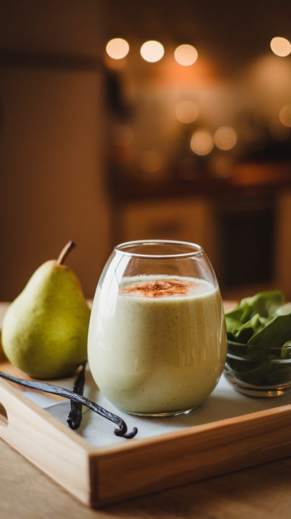 This one is unexpectedly delicious. Pear brings a mellow sweetness, while vanilla adds cozy warmth. The blend tastes like a light green dessert, but the nutrition content is legit. I tried this during pear season and became instantly obsessed.