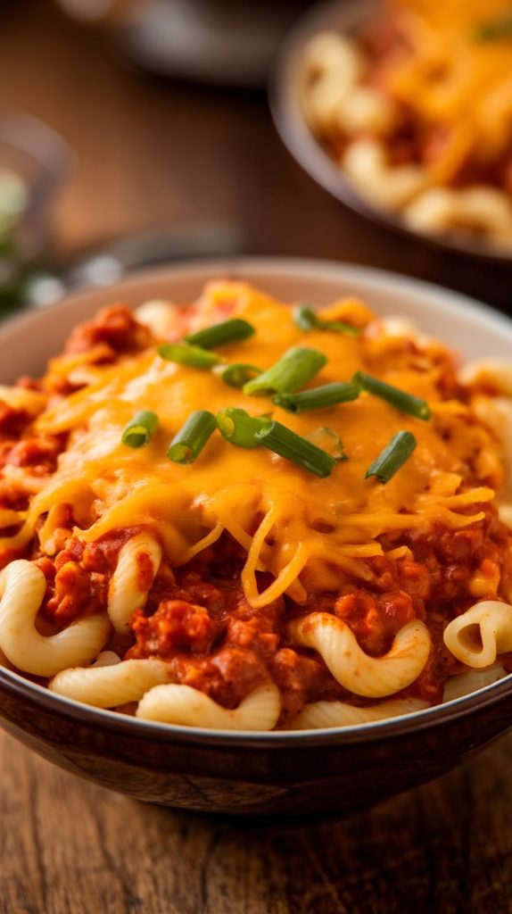 Cook the pasta separately, stir it into your chili, melt in some cheese, and brace yourself — this dish is dangerously addictive.