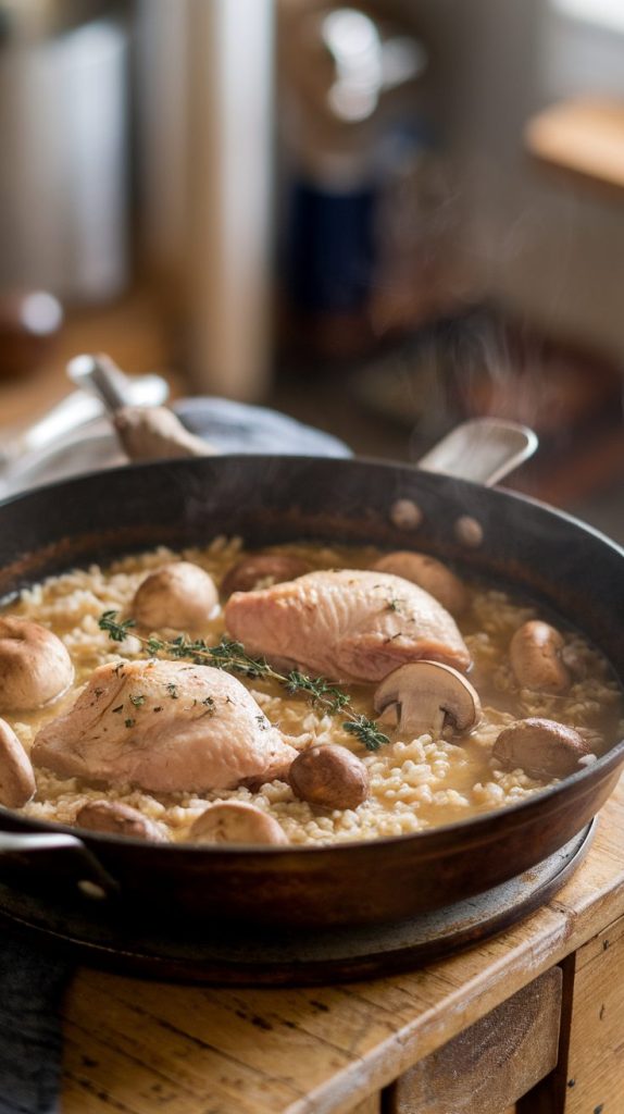 Earthy mushrooms + juicy chicken + fluffy rice = guaranteed comfort. Everything cooks in one pan, which feels like a personal gift on busy nights.