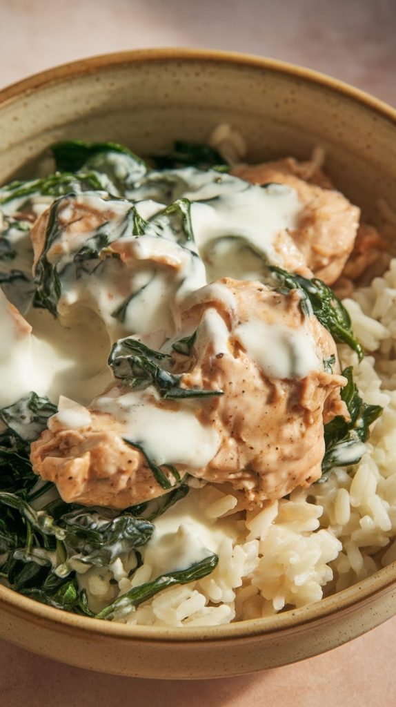 2. Creamy Spinach Chicken and Rice