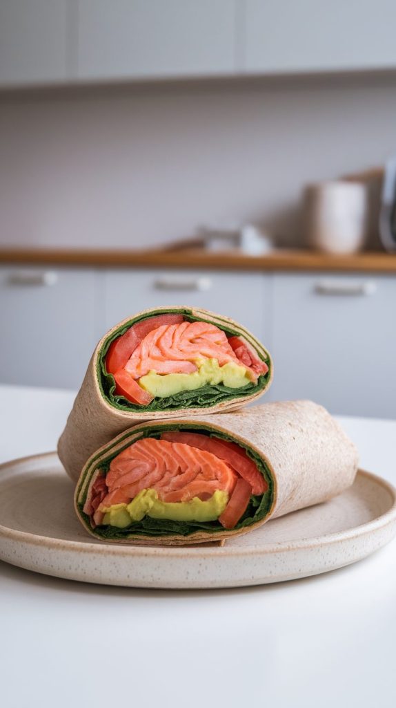 This wrap is what you make when you want something filling but not fussy. The creamy avocado pairs perfectly with tender salmon, and everything gets wrapped up in a soft tortilla.