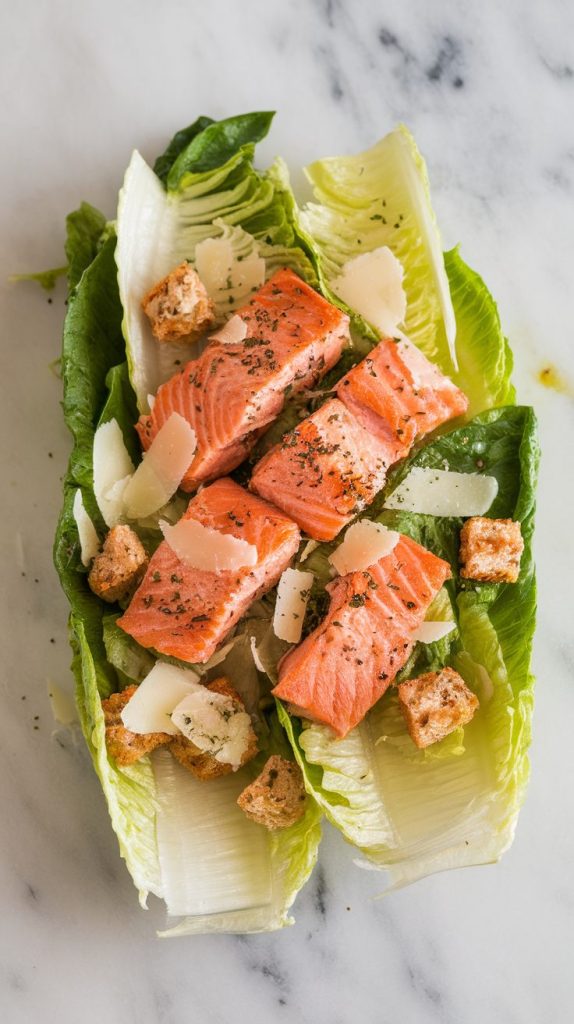 And yes, Caesar purists—this version skips anchovies, because salmon carries enough flavor on its own.