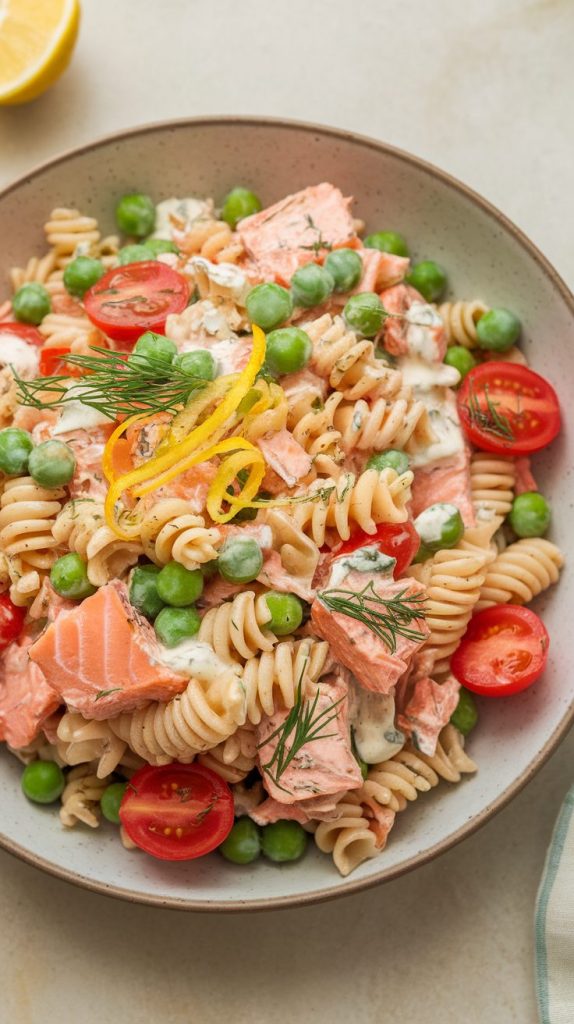 This pasta salad hits all the comfort notes without feeling heavy. The dill brings freshness, the yogurt adds creaminess, and the salmon gives it that protein-rich depth. It’s the kind of dish you make once and then crave again the next day.