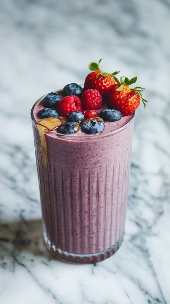 If you want something fruity that tastes like dessert but isn’t dessert, this is your smoothie. The berries bring tons of antioxidants and color, and everything blends into a cold, slightly tart, totally addictive drink.