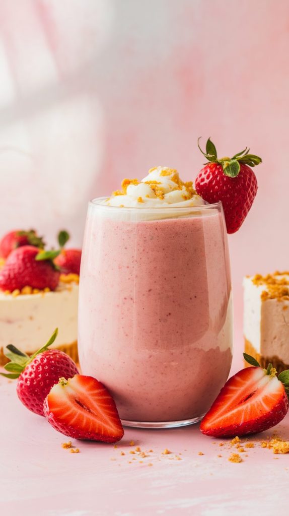 Yes, you read that right. Cheesecake. In smoothie form. And yes—it works. The yogurt and cream cheese create that tangy richness, while the strawberries keep things bright.