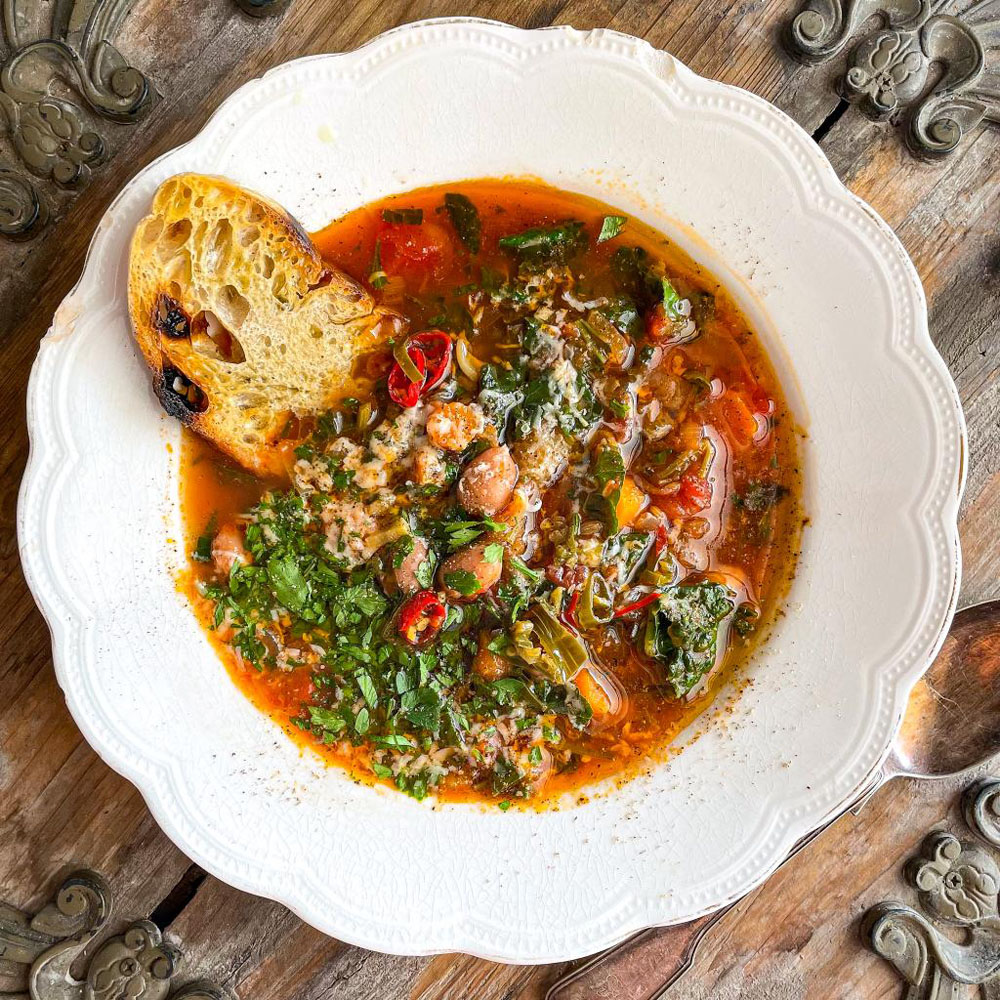 6. Tuscan Tomato, Borlotti Bean & Kale Soup