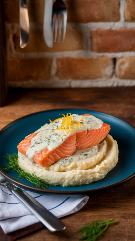 7. Dill Cream Salmon with Cauliflower Mash