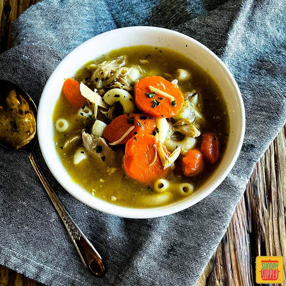 You’re letting flavor do the talking here: the bone broth gives depth, noodles (if you include them) bring comfort, and overall it’s satisfying on a whole new level. Little tip—add fresh herbs or a squeeze of lemon to brighten it up, or swap in rice instead of noodles to stretch it further.
