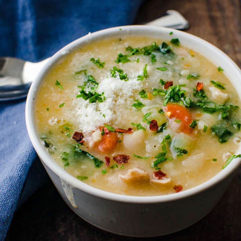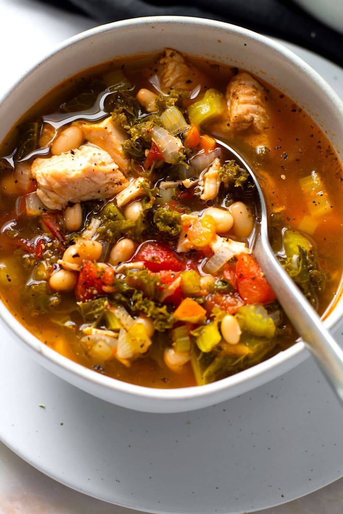 This soup stretches that turkey carcass into a clean, veggie-forward broth with hearty kale, diced tomatoes, and a rainbow of aromatics like carrots, celery, onions, and garlic. It’s full of gentle Italian herb vibes and keeps things healthy all the way through—lean, green, and totally Whole30 friendly if you skip the white beans.