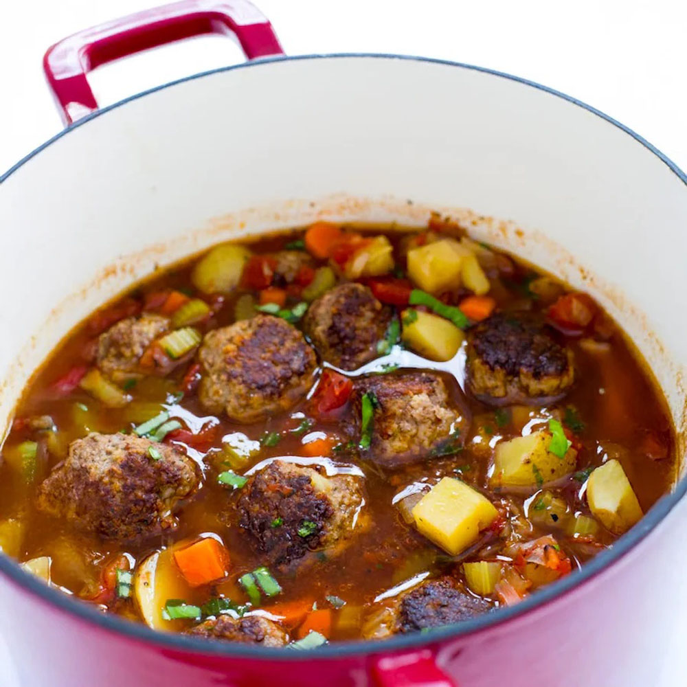 Meet the soul‑saver that’s part minestrone, part meatball soup—veggies, hearty broth, and well‑seasoned meatballs all cozying up together.