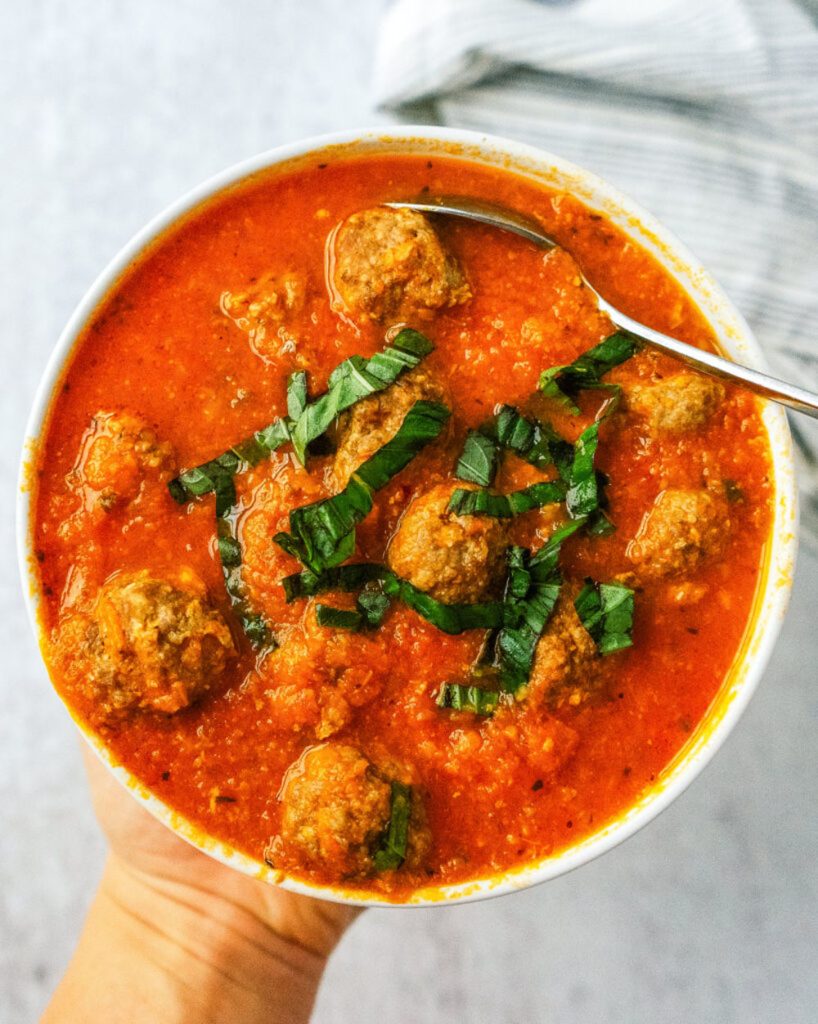 14. Tomato Basil Meatball Soup That’s Bright Yet Cozy