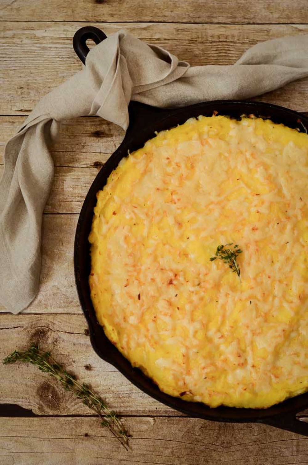 It smells incredible as it bakes, filling your kitchen with herbal autumn vibes. The top crisps to golden perfection while the inside stays creamy and full of cozy texture. It’s like a hybrid of gratin and souffle, but infinitely easier.