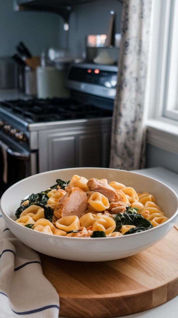 It’s creamy, comforting, and packed with textures thanks to the tortellini. The spinach keeps it from feeling too heavy.
